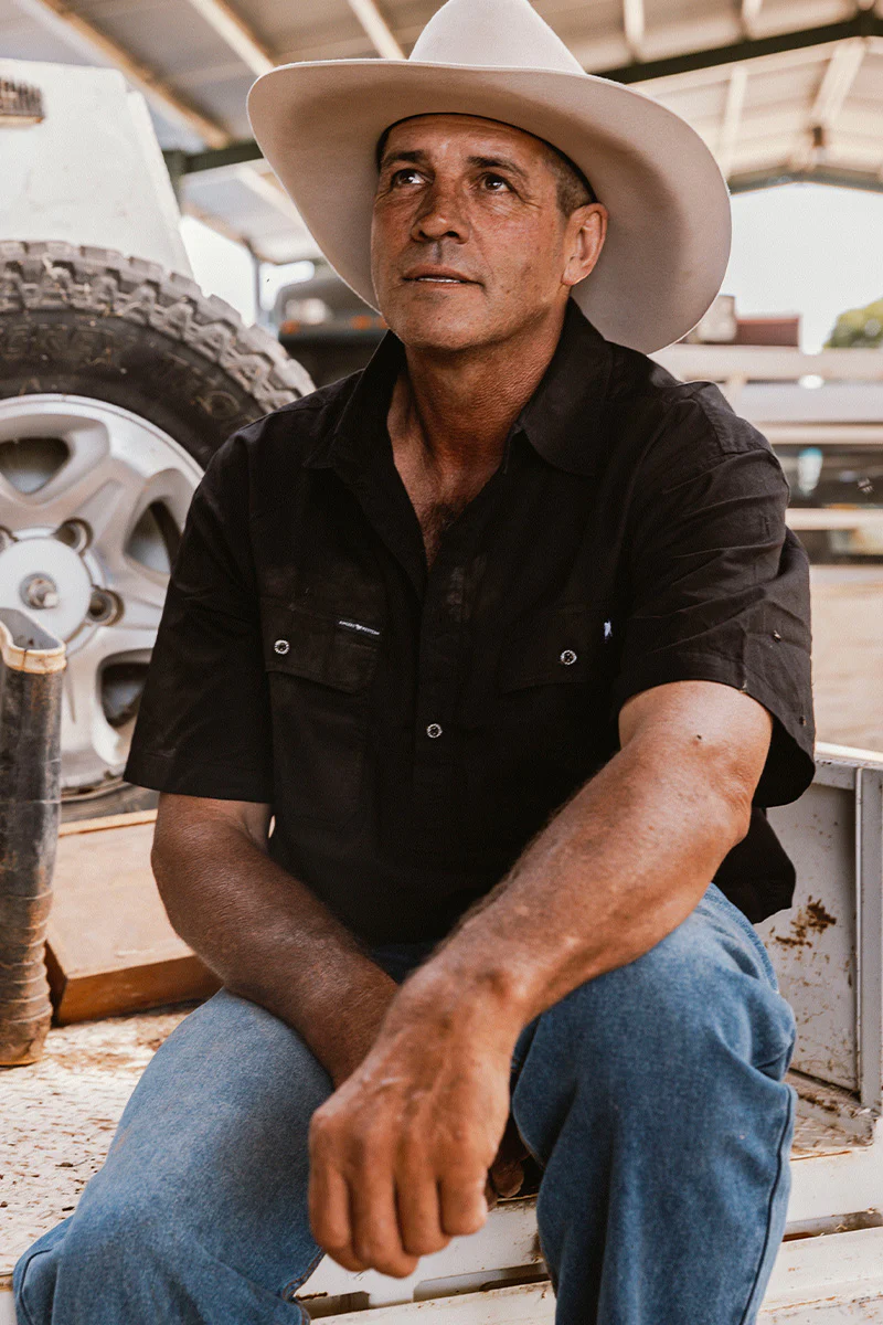 Pack Saddle Mens Short Sleeve Half Button Work Shirt - Black